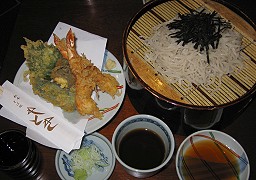 前文提及信州是日本蕎麥麵之鄉,這次依旅遊書介紹往在松本城附近的motoki,我們都點了天婦羅冷蕎麥麵(大2,200Yen/小1,550Yen)。蕎麥麵身方面我較喜歡第二天的更科,而這裡的天婦羅就較好,算是各有千秋。