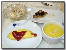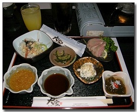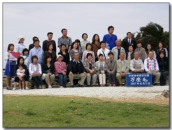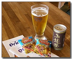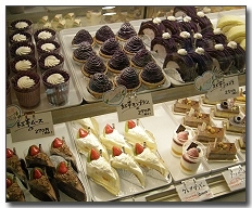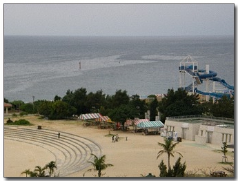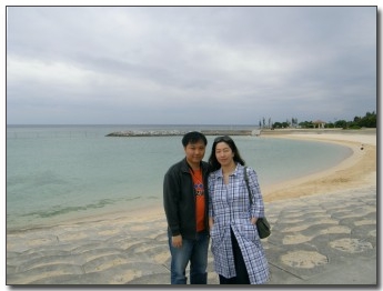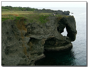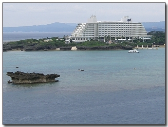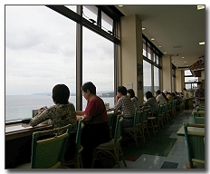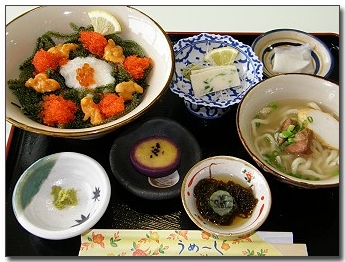 |  酒店check out後驅車出發,第一個目的地原本是萬座毛,但途中微雨紛飛,決定先往御果子御殿恩納店。恩納店的外觀是模仿首里城,一樓(地下)那層售賣沖繩土產及紀念品,更可隔著玻璃看到最受歡迎的紅芋(紫蕃薯)餡餅的生產過程;二樓是餐廳,當中有一排的展望座位可看著海景用餐,不過此刻只得一片白茫茫。我倆點了一份海葡萄丼定食(1,400Yen)和一份蛋糕配飲品套餐(550Yen),海葡萄丼除了有沖繩特產海葡萄,還有海膽,飛魚子及山芋,另有前菜酢水雲、豆腐,沖繩排骨麵及紅芋甜品,甚有特色味道蠻不錯。