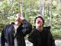 在膠囊酒店過了第一晚後,朝早我們就去十和田湖,我們在途中看到很多自然風景,例如紅葉、瀑布和十和田湖等,那裡的風景吸引到我影了很多相,我們一路行一路影,行了好幾公里,我記得那時香港有報道叫香港人每日行8000步可令身體健康,我們真的非常健康,整個旅程我們行左好Q多個8000步呀,為了慳$,不過周圍的美麗環境的確可以令人忘記這種疲倦的感覺,好像有用不完的體力,影到瀑布時,瀑布濺出來的水加上太陽光的照射映照出七色彩虹,與周圍的景色很襯,不過我們的相機就不好了,不過也不要緊。