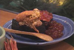 | 800日圓的滿潟海膽併三文魚子壽司 |