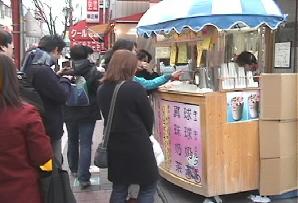 騰 騰 的 蒸 飽 點 心 及 天 津 甘 粟 等 小 食,是 日 本
