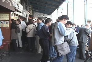 | 我 倆 在 這 裡 買 了 很 多 東 西,包 括 有 日 式 魚 蛋、魚 乾、冬 菇、玉 子、紫 菜,溫 室 蜜 瓜 及 茶 葉 等。在 買 了 這 麼 多 東 西 後 便 找 午 餐 的 地 方,這 裡 有 兩 間 食 店 相 當 出 名,一 是「井上」站 食 拉 麵 店,顧 名 思 義 是 沒 有 座 位 坐,而 要 站 著 吃 的 600 日 圓 拉 麵;二 是「築 地 壽 司 清」,分 別 有 本 店 及 別 館。 | |