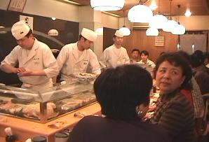 | 築地壽司清本店門外 | 店內有三位師傅握壽司 |